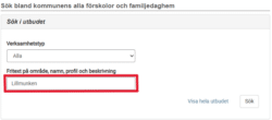 3. Välj vilka förskolor/fritidshem som du önskar söka till. Sök i utbudet för att få fram namnet på aktuella alternativ.