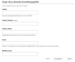 6. Ange och bekräfta dina kontaktuppgifter. Det är viktigt att dessa är korrekt ifyllda eftersom beslutsanteckningar skickas till dig via post eller e-post. Du kommer även att kunna följa dina ärenden när du loggat in i IST förskola/fritidshem.