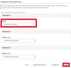 9. Rangordna dina alternativ. Om du saknar alternativ kan det bero på att du inte har lagt till dem i tidigare skede. Du kan då klicka på ”Lägg till fler alternativ”.