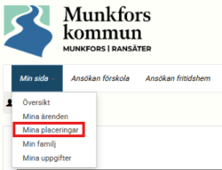 2. Klicka på menyn ”Min sida” och välj menyvalet ”Mina placeringar”.